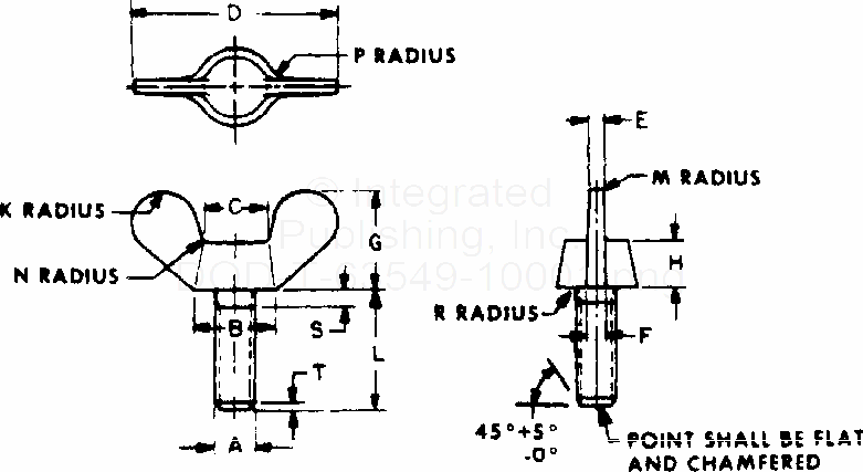 This specification covers one type of metrically dimensioned wing head thumbscrew.