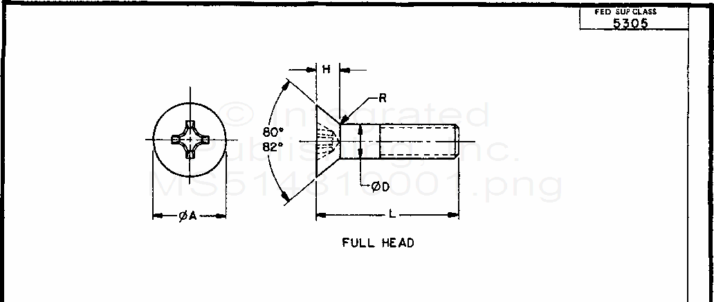 MS51481 Screw, Machine, 82 Degree Flat Countersunk Head, Cross-Recessed, Carbon Steel, Unc-2A