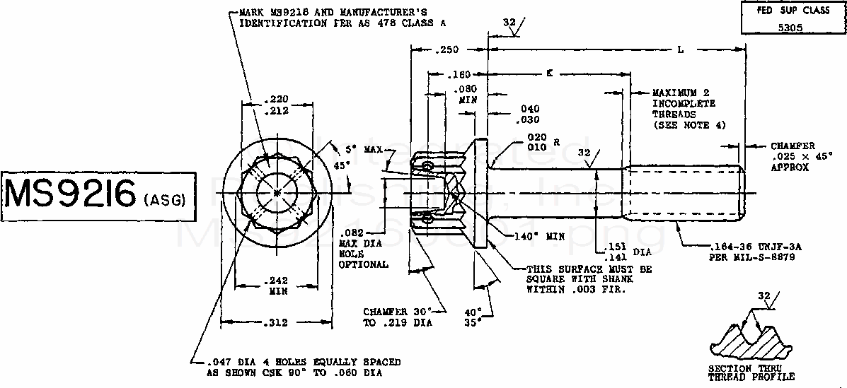 MS9216 Screw, Machine&Steel Ams 6304, Diffused Nickel-Cadmium Plate, Double Hexagon Extended Washer Head, Drilled, .164-36 Unjf-3A (S/S By Sae-As9216)