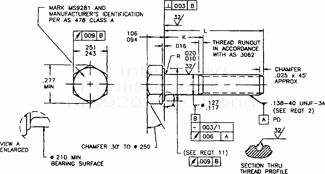 MS9281 Screw, Machine-Steel Ams 6322, Black Oxide, Hexagon Head, .138-40 Unjf-3A