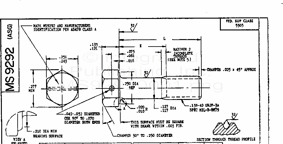 MS9292 Screw, Machine-Steel Ams 6322, Black Oxide, Drilled, 1 Hole, Hexagon Head, .138-40 Unjf-3A (S/S By Sae-As9292)