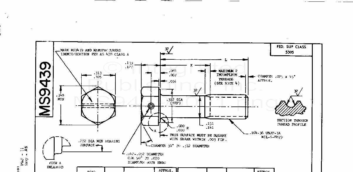 MS9439 Screw, Machine-Steel, Ams 6304, Diffused Nickel-Cadmium Plated, Hexagon Head, Drilled, .164-36 Unjf-3A