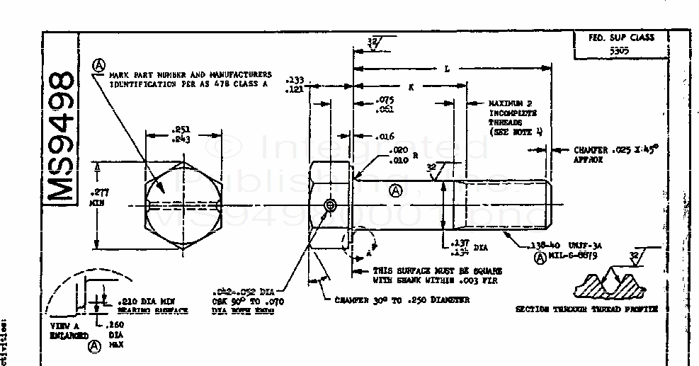 MS9498 Screw, Machine - Hexagon Head, Drilled, 1 Hold, Full Shank, Ams 5731, .138-40 Unjf-3A