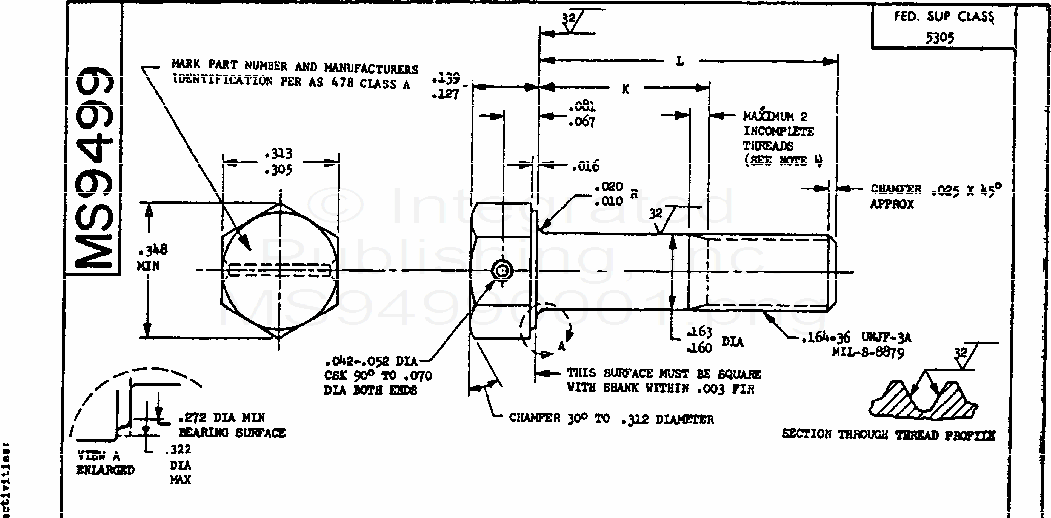 MS9499 Screw, Machine - Hexagon Head, Drilled, 1 Hole, Full Shank, Ams 5731, 0.164-36 Unjf-3A