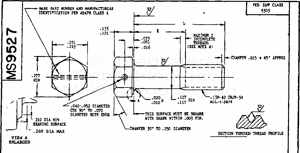 MS9527 Screw, Machine Steel Ams 6322, Cadmium Plate, Drilled, 1 Hole, Hexagon Head, .138-40 Unjf-3A (S/S By Sae-As9527)