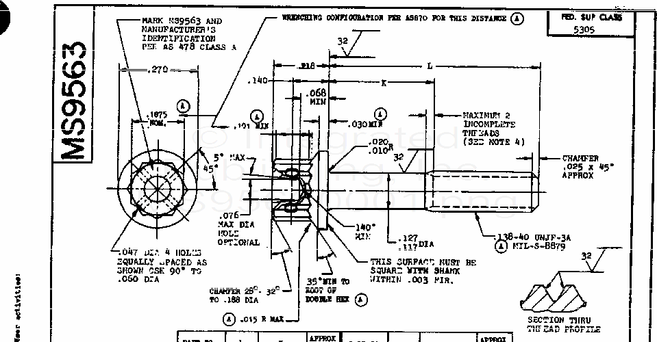 MS9563 Screw, Machine - Double Hexagon Extended Washer Head, Drilled, Pd Shank, Ams 5731, .138-40 Unjf-3A