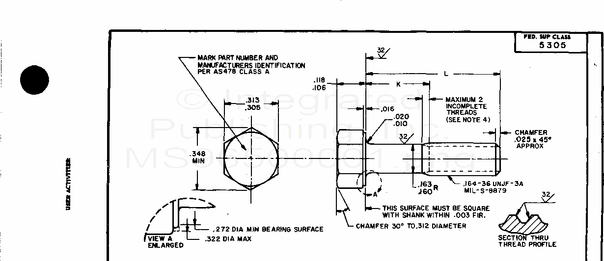 MS9650 Screw, Machine - Hexagon Head, Full Shank, Titanium Ams 4967, 0.164-36 Unjf-3A