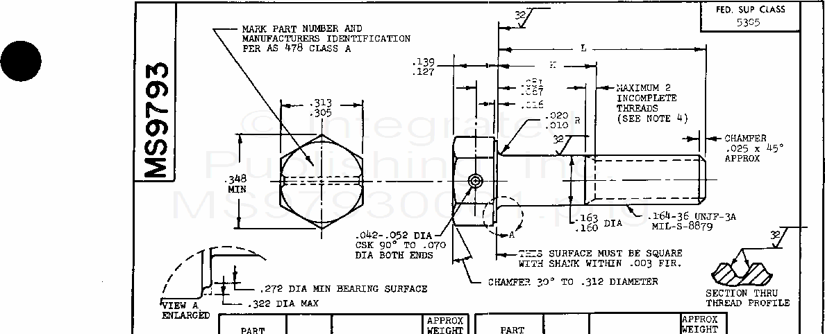 MS9793 Screw, Machine-Hexagon Head, Drilled, 1 Hole, Full Shank, Ams 5643, 0.164-36 Unjf-3A