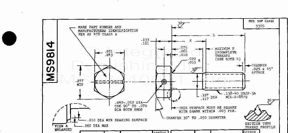 MS9814 Screw, Machine-Hexagon Head, Drilled, 1 Hole, Pd Shank, Ams 5643, 0.138-40 Unjf-3A