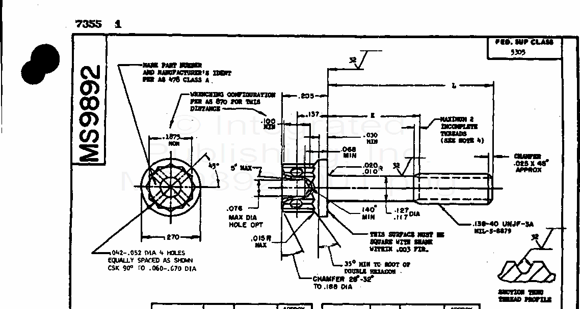 MS9892 Screw, Machine-Double Hexagon Extended Washer Head, Drilled, Ams 5616, .138-4 Unjf-3A