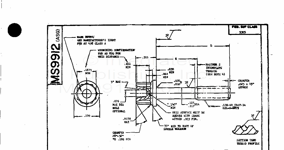 MS9912 Screw, Machine - Double Hexagon Extended Washer Head, Pd Shank, Steel Ams 6322, Cadmium Plated, 0.138-40 Unjf-3A