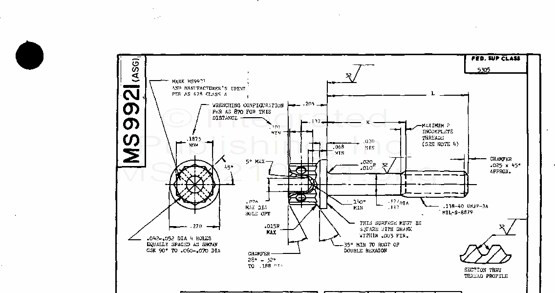 MS9921 Screw, Machine - Double Hexagon Extended Washer Head, Drilled, Pd Shank, Steel Ams 6322, Cadmium Plated, 0.138-40 Unjf-3A