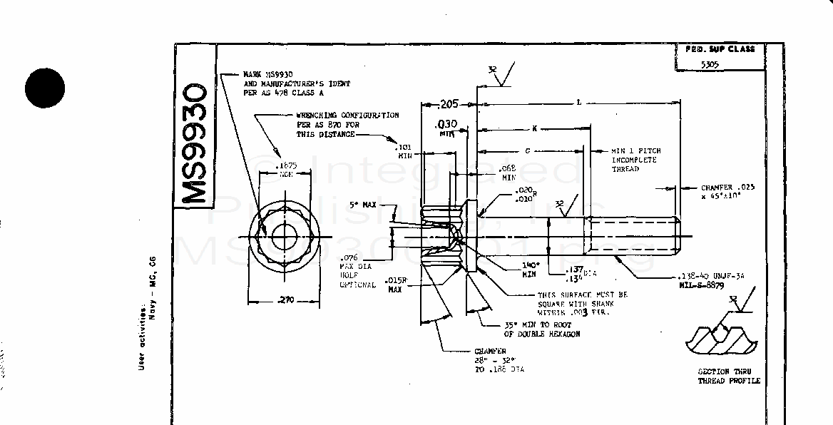 MS9930 Screw, Machine-Double Hexagon Extended Washer Head, Full Shank, Steel Ams 6322, Cadmium Plated, 0.138-40 Unjf-3A