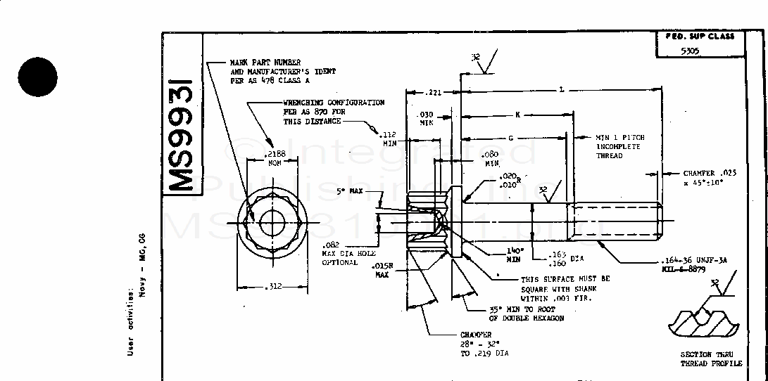 MS9931 Screw, Machine - Double Hexagon Extended Washer Head, Full Shank, Steel Ams 6322, Cadmium Plated, 0.164-36 Unjf-3A